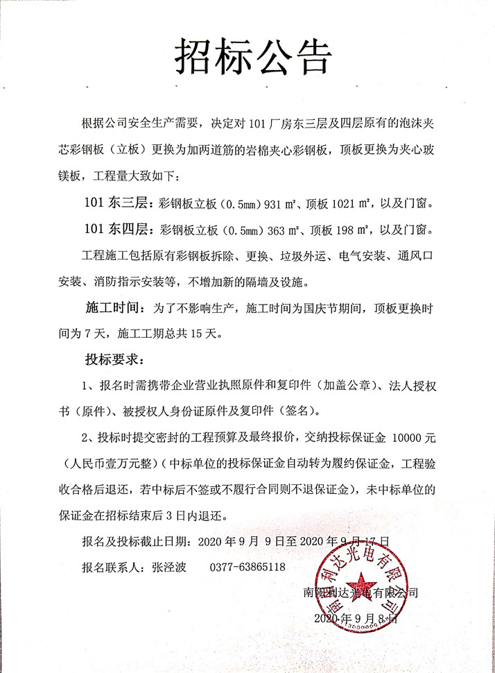 - (2022-09-29)光電新區(qū)三期廠房一層裝修施工的招標公告