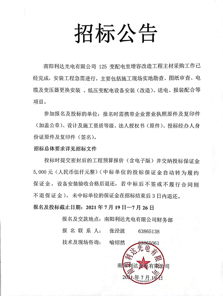 - (2025-07-17)利達(dá)光電公開招聘財(cái)務(wù)部部長擬錄用人員公示