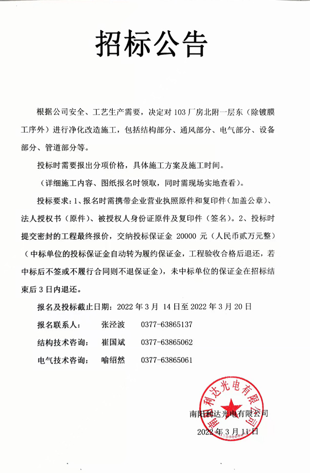 - (2022-09-29)光電新區(qū)三期廠房一層裝修施工的招標(biāo)公告